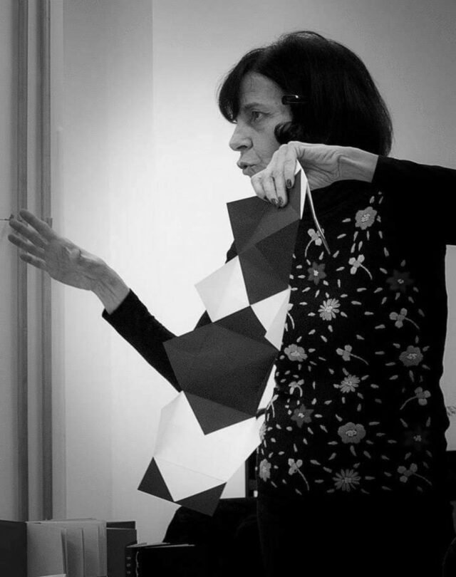 Estela Vilela é encadernadora, educadora e artista do livro, formada em Psicologia pela PUCSP e em Letras pela USP-SP. Sua experiência em encadernação inclui o Liceu de Artes e Ofícios de São Paulo, cursos formativos na ABER- Associação Brasileira de Encadernação e Restauro e cursos internacionais, posteriormente, tendo seus trabalhos expostos em diversos Fóruns e exposições internacionais.Durante sua presidência na ABER (2013-2019), impulsionou a cultura do livro, promovendo o Concurso Internacional de Encadernação Artística em São Paulo e a Casa do Papel na FLIP em Paraty por dois anos consecutivos, entre outras iniciativas. Seus projetos educativos enfatizam a experimentação gráfica, pesquisa e produção de livros de artista.Atualmente, além de co-idealizadora e orientadora do curso online “Dobras de Si”, ministra cursos presenciais, oferece consultoria em seu ateliê em São Paulo e colabora com instituições culturais tais como Sesc e Itaú Cultural.